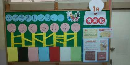 本校の養護教諭が「健康」、「食文化」について、掲示物を作製しました。風邪予防を促す7つの方法を「うまくきたえて」の頭文字を取って、あみだくじ形式で伝えられています。健康おみくじはとても評判がよく、たくさんの生徒が休み時間を使って、おみくじを引いていました。まだまだインフルエンザなどの感染症の猛威は続いています。これからも、学校ではやるべきこと(うがい、手洗い、換気)を継続して行ってまいります。
