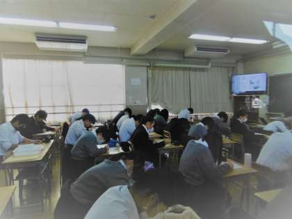 写真は単元テストを静かに行っているところです。全員が集中してテストを受けることができていました。