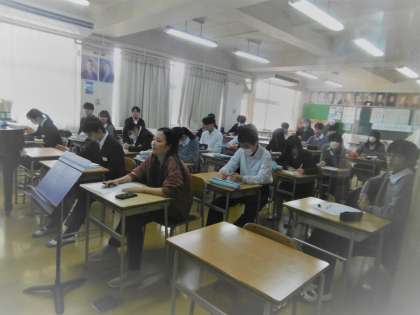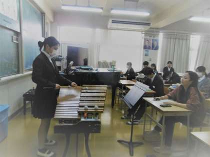 木琴のテストを行っていました。写真を撮った時の生徒の演奏を聞くことができましたが、見事な演奏で、聞いているクラスの仲間の生徒からも拍手喝采でした。生徒ががんばっている姿を見て、元気をもらいました。