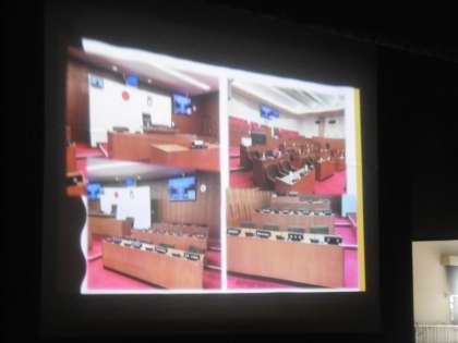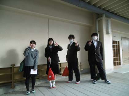 1つは、2学期の全校生徒及び保護者の方にご協力いただいた「ステンレス製品回収」のお礼がありました。水筒は皆さんのご協力により63本も集まりました。たくさんのご協力に感謝申し上げます。ありがとうございました。もう一つは、1月31日(金)に行われる評議会を大東市教育委員会のご協力で大東市議会の議場を使って行えるようになりました。子どもたちにとっては、とても貴重な体験になるはずです。代表生徒の果敢な発表を期待しています。集会後に今日の進行をがんばった生徒会役員で写真を撮りました。