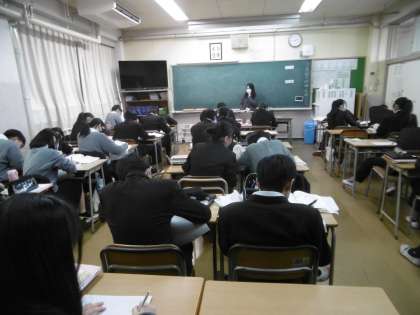 写真は同音異義語の小テストを行う直前の様子です。3組と同様に、少しでもいい点数を取ろうと、生徒は一生懸命に覚えようとしていました。