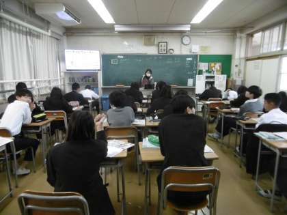 学習内容は「持続可能な食生活」でした。昨日2年生で行われた食育の授業でも出ていた日本の食料自給率についての授業でした。通学用カバンが見事にロッカーにきちんとしまわれていました。続けましょう。