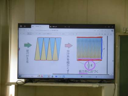 授業のめあては「おうぎ形の面積や中心角の大きさを求めることができる」でした。2組も通学カバンが教室のロッカーにきちんとしまわれていました。是非、続けましょう。