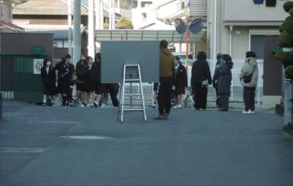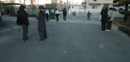 体にこたえるほどの本当に寒い朝でしたが、2年生の保護者の方に朝のあいさつ運動(おはようウイーク)にご協力いただきました。昨日に引き続き、二日連続でご参加いただいた保護者の方もおられました。本当にありがとうございました。正門では、生徒会担当教員が登校してきた子どもたちに「どっち派アンケート」を取っていました。