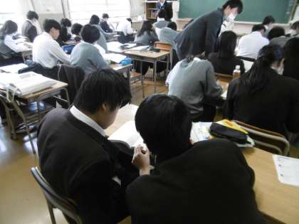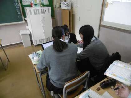 2組でも教え合い活動が行われていました。解き方が分からない子へ教えることで、自分の学力もさらに高まります。仲の良い学年らしい光景でした。