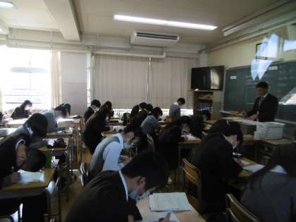 写真は単元テストを行っているところです。全員が集中して、静かにテストを受けていました。2月10日(月)の実力テストに向けて、いい勉強にもなりました。
