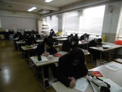 生徒は集中して作品作りを行っていました。下絵をもとに、アクリル板に専用の器具を使って、書き写す作業をしていました。