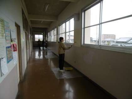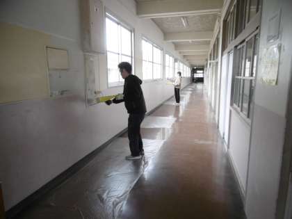 3年生が前日注意を体育館で行っている間に、校務員さんと大東市営繕班さんが学習参観に間に合うように、2階廊下の壁のペンキ塗りをしてくれました。ありがとうござました。
