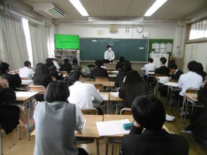 実力テスト返却前に教科担当の先生からテストの解説が行われていました。生徒は返却されるテストにドキドキしていました。