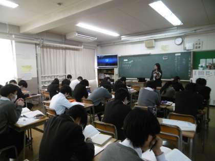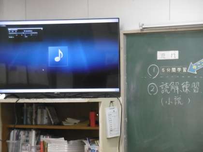 公立高校の入試対策として、大型テレビから録音された音声を流し、「読解練習(故郷)」を行っていました。