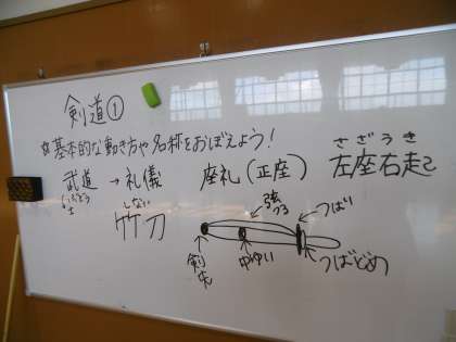 学習内容は「剣道」でした。剣道部員と先生が手本を示していました。手本を見せてくれた生徒への温かい拍手がとてもよかったです。