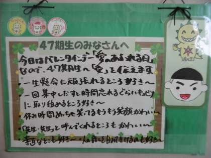 本日2月14日がバレンタインデーということで、愛のメッセージが書かれていました。