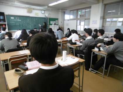 入試対策として、漢文の授業がプリントを使って行われていました。全員が集中して、とてもいい授業が展開されていました。3組と同様に、1組も見事に通学かばんがロッカーに整理整頓されていました。やはり、日々の「凡事徹底」が大切です。