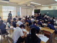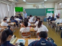 コサージュ作りを行っていました。班で仲良く協力しながら、作り方が示されたプリントを使って、作業が行われていました。