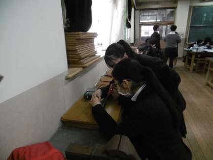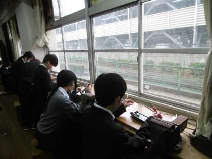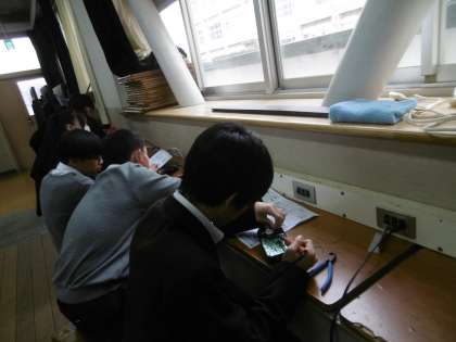 はんだ付けを一生懸命に行っていました。はんだ付けに伴うにおいや煙が実習をより緊張感のあるものにしていました。安全面を最優して、今日も授業が行われていました。