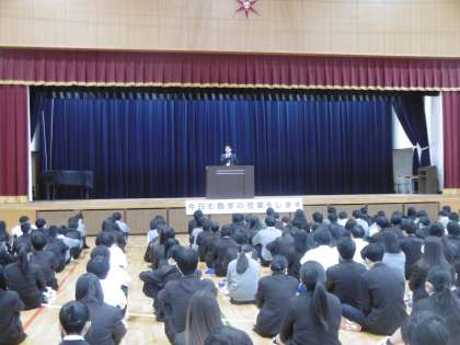 3年生最後の全校集会になりました。今日も校長から、5分間の数学の授業として、「アメリカのある銀行」の話を生徒にしました。毎日、86400ドルが自分の口座に振り込まれるというアメリカの銀行。ただし、24時間経つと、0になってしまいます。「皆さんは、そのお金をどう使いますか?」という質問から、生徒に話し始めました。話題を日本に変え、毎日、86400秒がもらえる学校(谷川中学校)があります。でも、一日経つと、また0になり、翌日にまた86400秒がもらえます。「皆さんは、その時間をどう使いますか?」という次の質問をしました。最後にある詩を紹介しました。