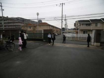 3年生の保護者の方が今日も朝早くから、正門であいさつ運動にご参加いただきました。本当にありがとうございました。