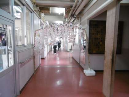 心温まる素敵な掲示物が1階廊下に飾られていました。在校生から来週卒業する3年生へメッセージが書かれ、短冊になっていました。今朝登校したたくさんの3年生がうれしそうに見ていました。