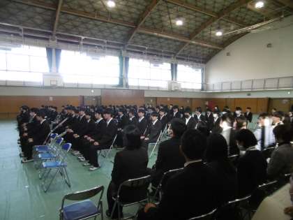 今日の午後、卒業式予行を行いました。当日の次第に沿って、本番通りに進行をしました。45期生(卒業生)の態度は本当に立派でした。在校生を代表して参列した生徒会役員や1、2年生の学級委員の態度も見事でした。