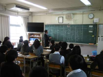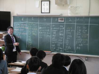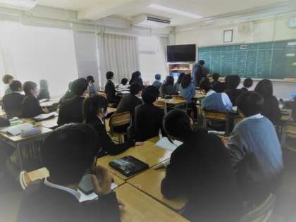 班対抗の単語クイズの採点が行われていました。全員が先生の答え合わせの説明を静かに聞き、教科担当の先生も笑顔で解説しているのが印象的でした。