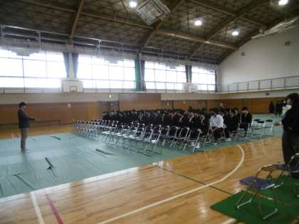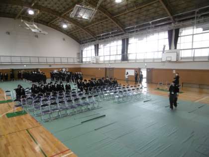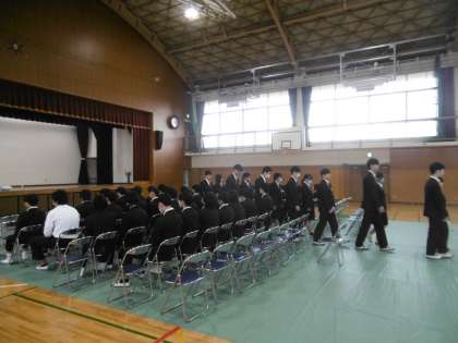 卒業式後の退場の練習の様子です。明日、体育館におられるすべての方の温かい拍手で卒業生を送り出したいと思っています。写真は上から、3年1組、3年2組、3年3組です。
