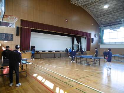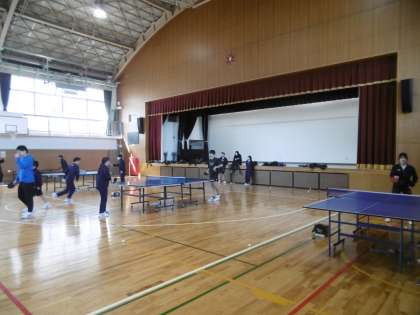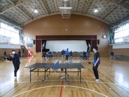 体育館を覗いてみると、卓球部が和気あいあいと練習をしていました。卒業した3年生も来てくれていて、後輩の練習相手になってくれていました。
