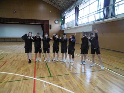 朝練の前に集合写真を撮りました。部員同士の仲が本当によい部です。