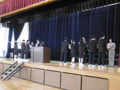 3月末をもって他校へ異動された10名の先生方の離任式を行いました。和やかな素敵な時間が流れる中で、長短の差はあっても谷川中学校を愛し、一生懸命にお勤めいただいたことに変わりはありません。