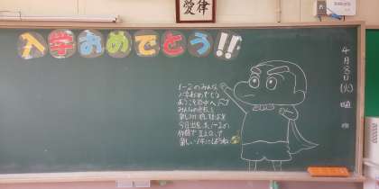 4月8日(火)の入学式当日の1年生の教室の黒板に書かれていたメッセージです。