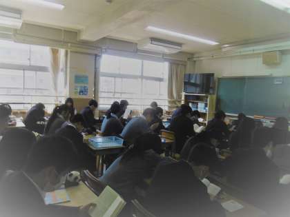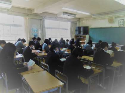 写真は上から、3年1組、3年2組、3年3組です。最上級生の3年生が下級生の見本となり、とるべき行動を行っていることが谷川中学校の強みです。