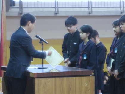 また、数学検定合格者に合格証書を手渡し、全校生徒で頑張りを称えました。