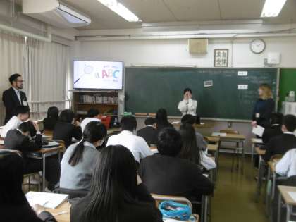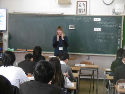 パワーポイントを使った英作文での自己紹介を終え、教科担当の先生から講評をいただいていました。「どの子もよくがんばっていました。」、「一生懸命に考え、取り組んだことがよく分かりました。」などの感想が述べられていました。