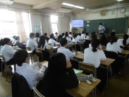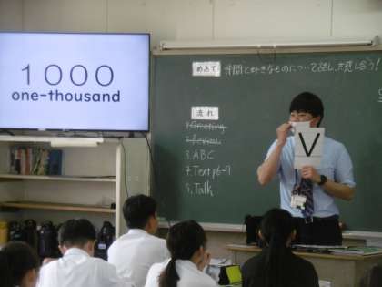 生徒の発音する声が本当に大きくて、とても感動しました。教科担当の先生が示す見本をよく見て、発音練習をすることができていました。笑顔で楽しそうに授業を受けてる1組の生徒を見て、うれしく思いました。