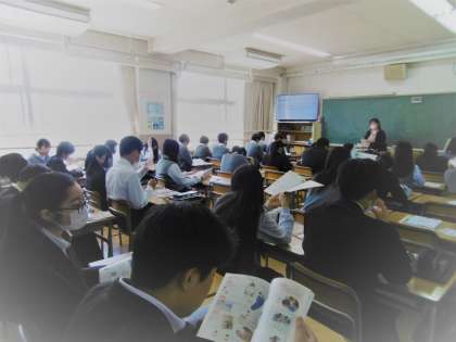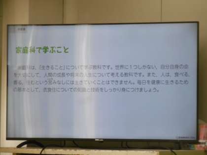 最初の授業ということで、ガイダンス(授業の進め方や評価方法などの説明)が行われていました。教科担当の先生が説明されていた家庭科の授業の目的の話がとても印象に残りました。