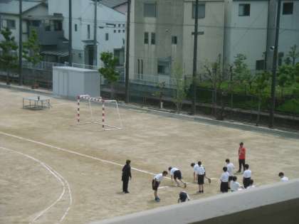 学習内容は「50走」でした。天気がよく、心地よい気温の中で、生徒はがんばって授業に参加をしていました。