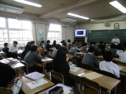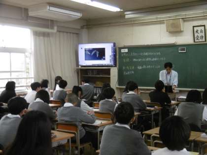 授業のめあては「生物の増え方の一つを説明できるようになる」でした。大型テレビに映し出された動画を生徒は静かに、そして真剣に見ていました。