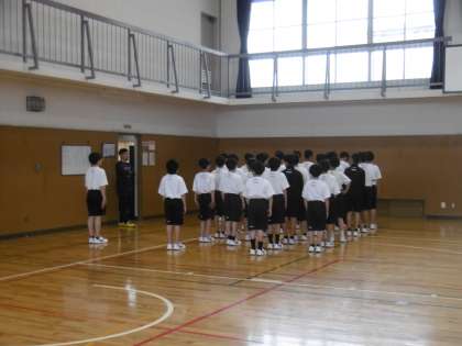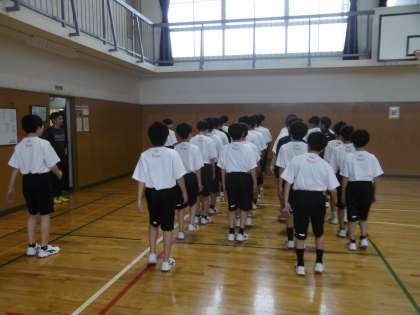 男子も集団行動が行われていました。体育館中に広がるほどの大きなかけ声が一段と集団行動の演技を引き締めていました。楽しそうに笑顔で体育の授業に参加することができている48期生にあっぱれです。