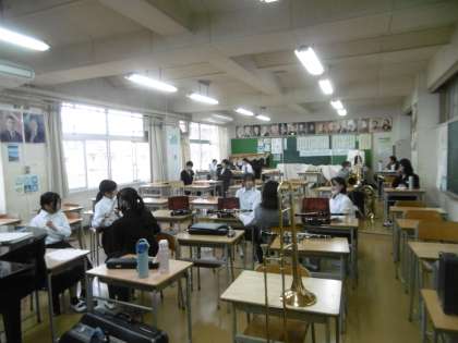 どの部活動にも顧問が練習についていました。1年生の正式入部は、来週の28日(月)です。写真は上から、剣道部、美術部、吹奏楽部です。