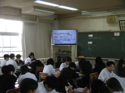 2組は社会で、授業のめあては「時差の計算ができる」でした。