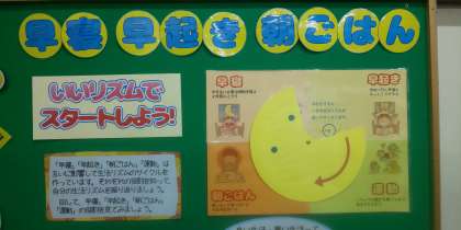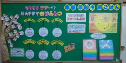 毎月、本校の養護教諭が作製しています。子どもちが興味をもち、生徒にとっても学びがあるようにと様々な工夫がされています。たくさんの生徒が保健室前の廊下で立ち止まり、興味津々で見ていました。