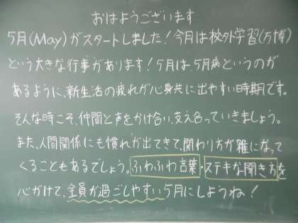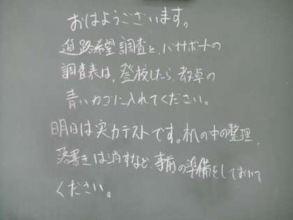 写真は上から、1年1組、2年3組、3年1組です。3年生は明日、第1回実力テストです。精一杯がんばりましょう。