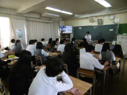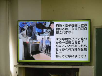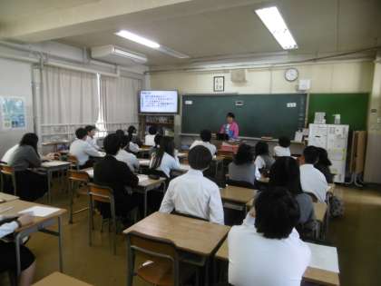 本校の交通手段は電車(住道駅〜夢洲駅)です。万博会場でもたくさんの方が入場されていて、混雑が予想されます。万博内では班行動ですが、班長を中心にマナーやルールを守って行動しましょう。分かりやすく作られたパワーポイントの映像をもとに、一つひとつ行程を確認していきました。写真は上から、2年2組、2年3組です。