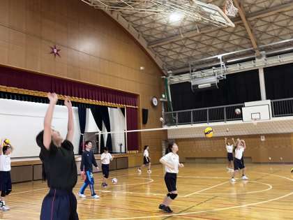 午後からは女子バレー部が練習をがんばっていました。一年生も加わり、練習の雰囲気も一段とよくなっています。