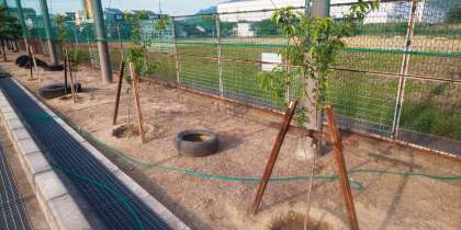 3月に谷川自治会より、寄贈いただいた桜の木、ハナミズキの木が順調に育っています。数年後には、東門にもきれいで素敵な花が咲きほこっていることでしょう。寄贈していただいた谷川自治会の皆様、ありがとうございました。これからもしっかり育ててまいります。