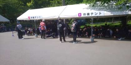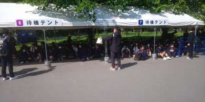 集合場所の大阪城公園に着きました。谷中生の電車内での過ごし方は、とてもよかったです。
