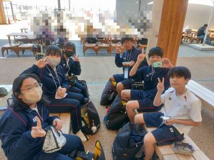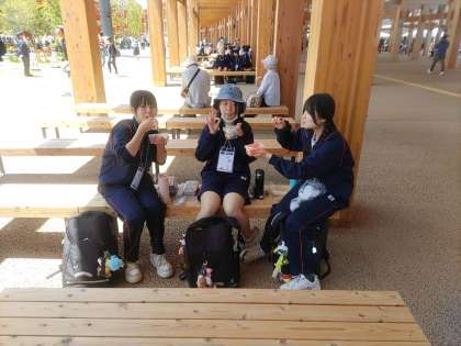 間もなく、割り当てられた3年生のパビリオンの入場が始まります。朝早くからお弁当を作ってくれて、「ありがとう!」と言ってました。