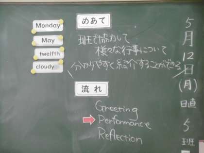 授業のめあては「班で協力して様々な行事について、分かりやすく紹介することができる」でした。2つの班の発表を見ましたが、とても立派な発表でした。パワーポイントもきれいに作成されていました。