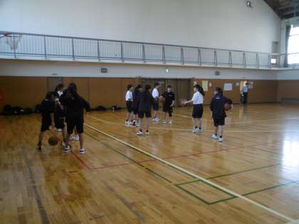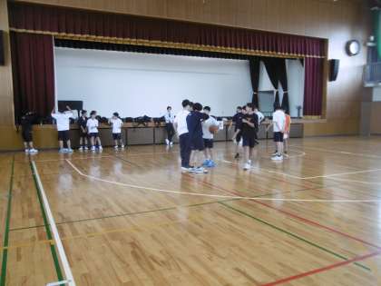 男子バスケットボール部と女子バスケットボール部の朝練の様子です。男女仲良く、朝からきびきびとした練習をすることができていました。顧問の先生もきちんと練習についていました。