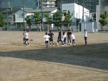少し汗ばむくらいの気温の中、子どもたちは部活動を楽しんでいるように見えました。写真は上から、女子バレー部、陸上部、サッカー部です。