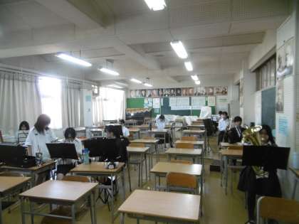 写真は上から、美術部、吹奏楽部、バドミントン部です。どの部の3年生も、最後の夏に向かって、たゆまに努力を続けていました。「継続は力なり」です。がんばりましょう。